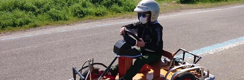孫の要求に応じ、子供が乗って動く車をつくりました。