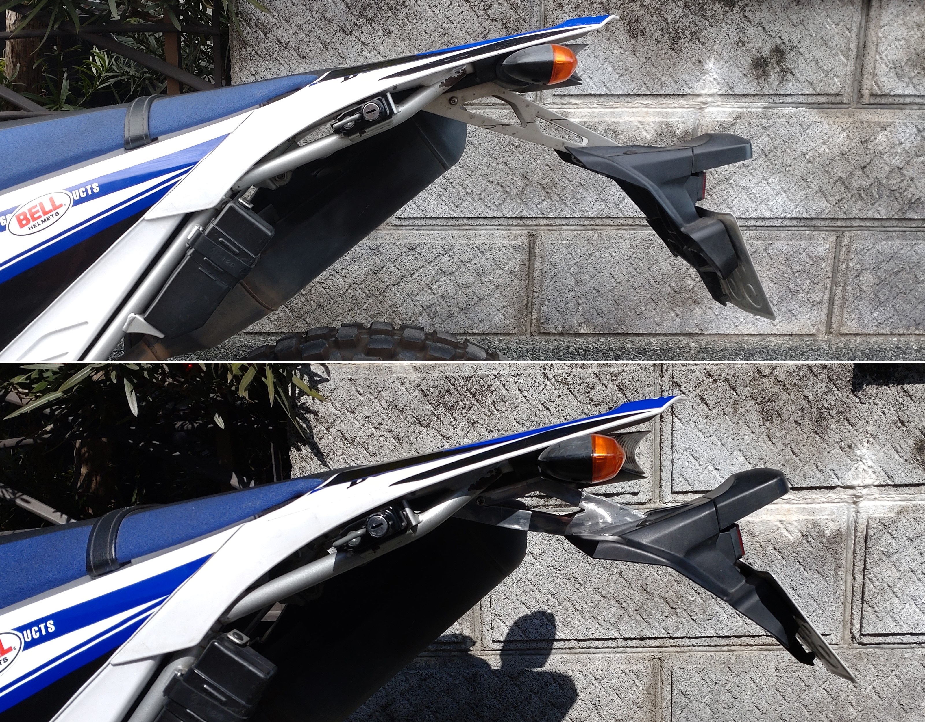 上の写真がオリジナル、下が今回、作ったショートフェンダーです。