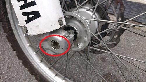 ホイールのセンター合わせは、軸(ホイールアクスル)が、写真のように締め付け部分の中に少し入ったあたりでちょうどいいようです。