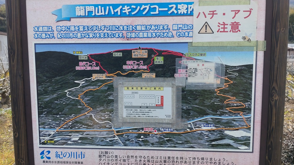 麓の駐車場(無料)にある案内板です。