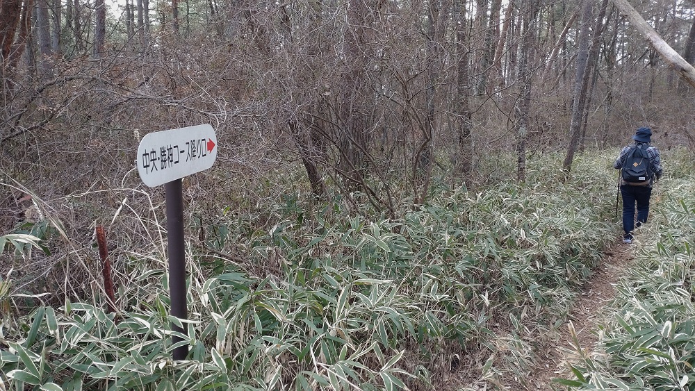 山頂までのルートは、田代コース、中央コースの他に、勝神コースがあるのですが、現在(2023年3月)勝神コースは「草木等で通行困難」となっていて、本日は、登り田代コース、下り中央コースで行きます。