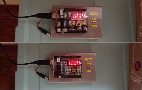 上が、数値1234の出力で、1を出力した後、リセットなしで、2を出力したときの表示です。