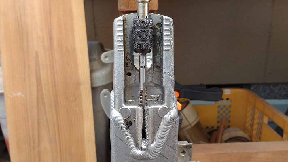 グラインダーで削っているので、ネジ山は、タップで調整します。