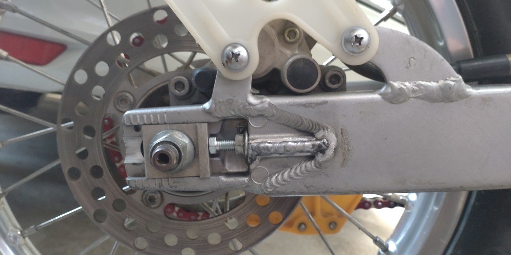 チェーンアジャスターボルトが固着していて、チェーン調整時、トルクをかけすぎたか、根本からねじ切れてしまいました。