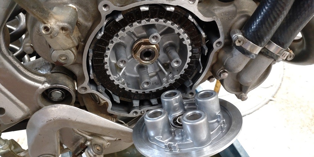 クラッチプレートが、固着しているほどの症状ではないですが、ワイヤーのアジャスターでは調整できず、クラッチを分解して、状態を確認することにしました。