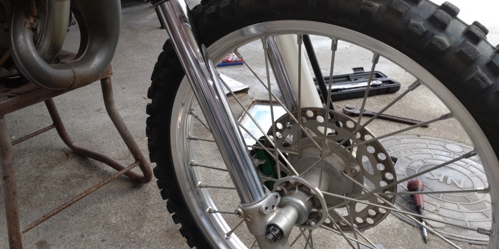 フロントフォークのオイル滲みが目立っていたので、オイルシールの交換を行います。