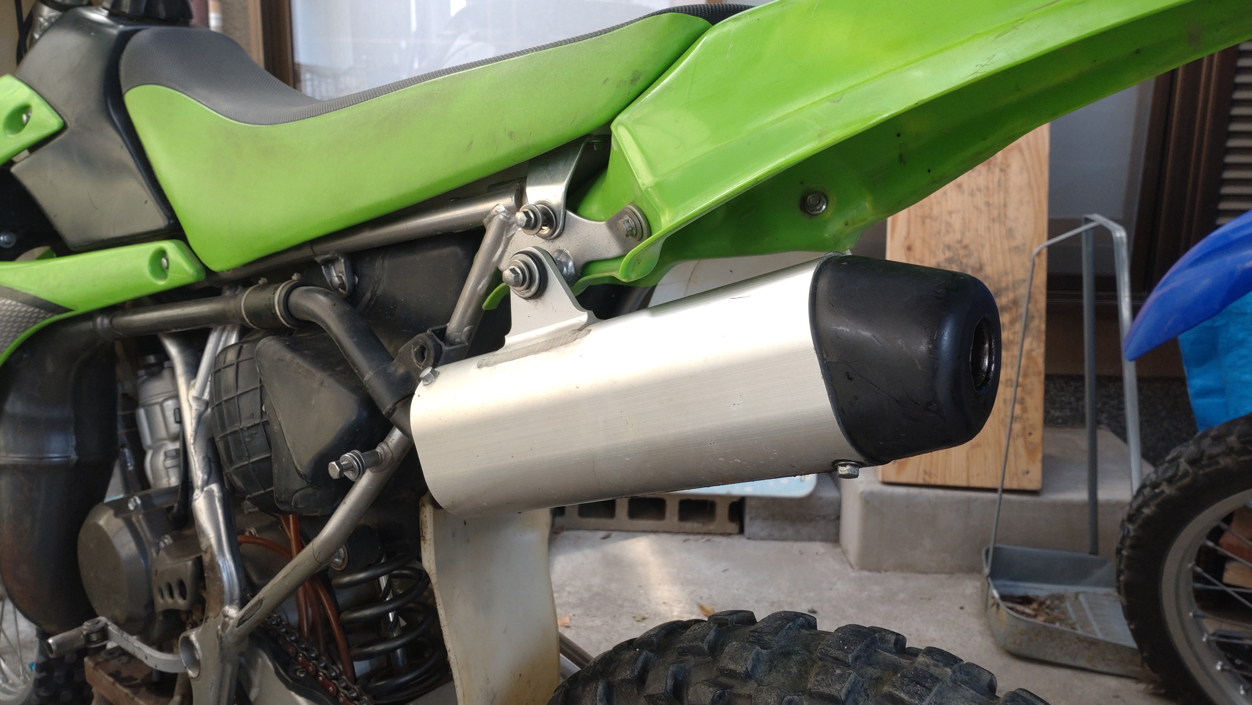 昔のモトクロッサーはマフラーなく、細いパイプが伸びていてカッコ良かったですが。。。