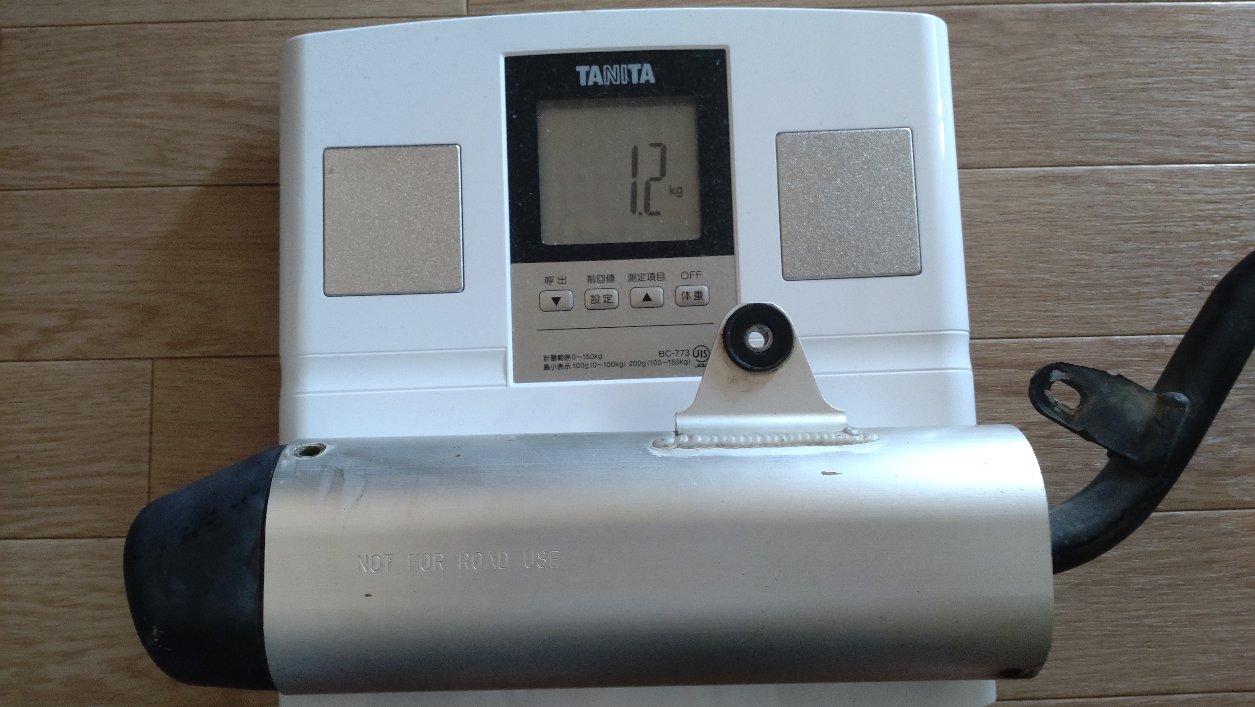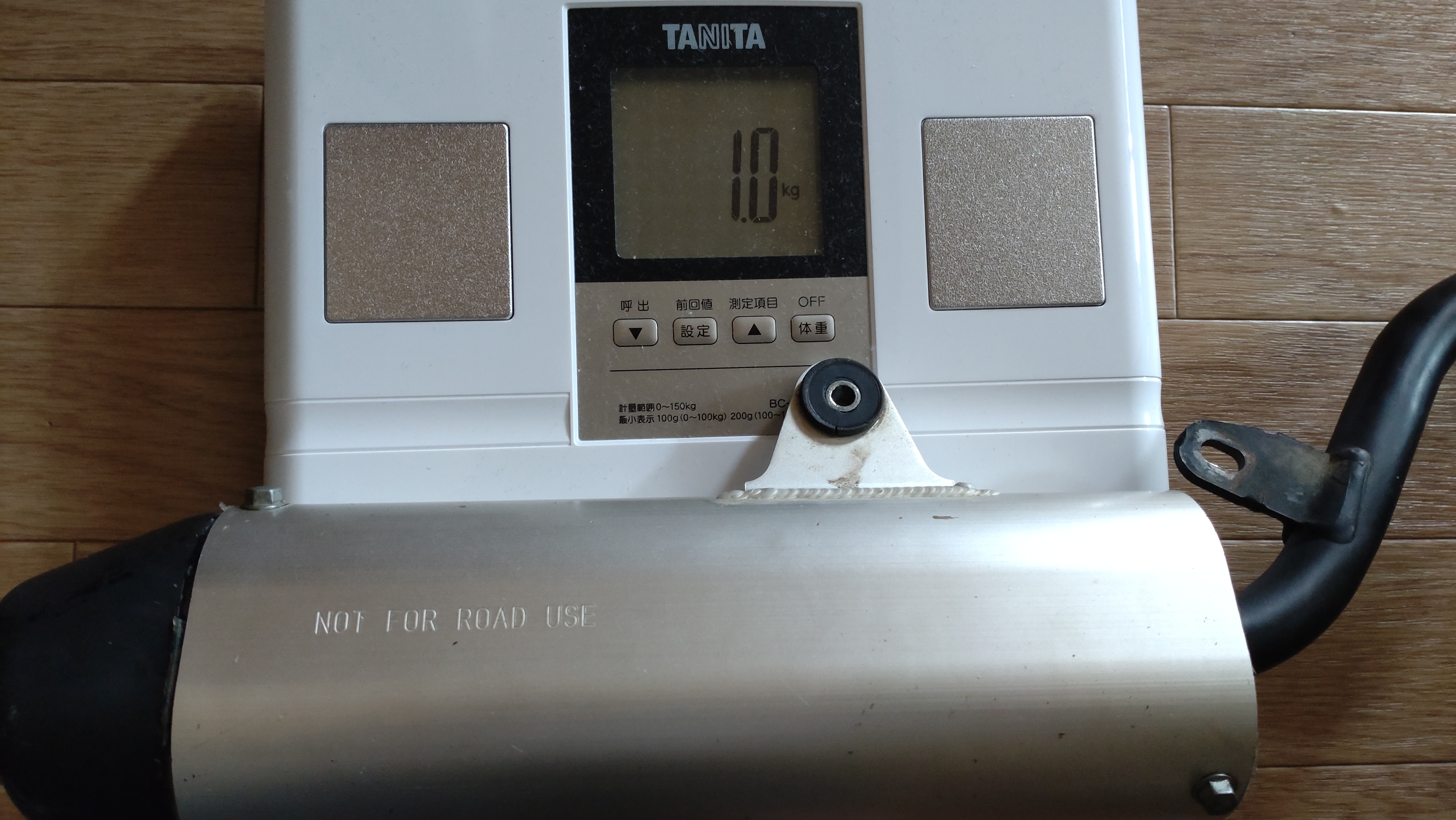 マフラーを外して、手に持ってみると予想外に重く感じたので、重さを計ってみました。