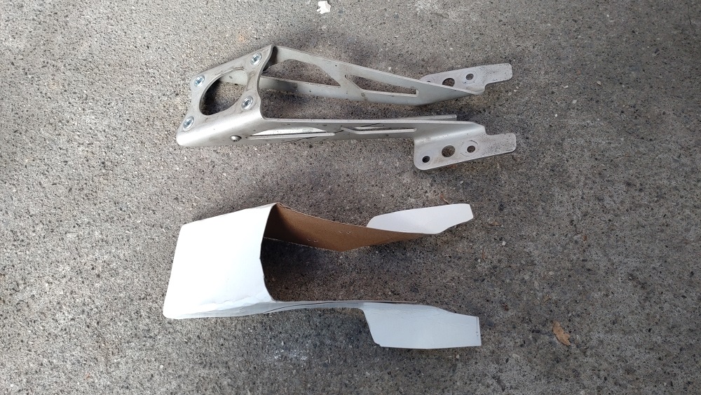 まずは、フェンダーのフレームを取り外し、厚めの紙で型取りして、フェンダー長さを短くした型枠をつくりました。