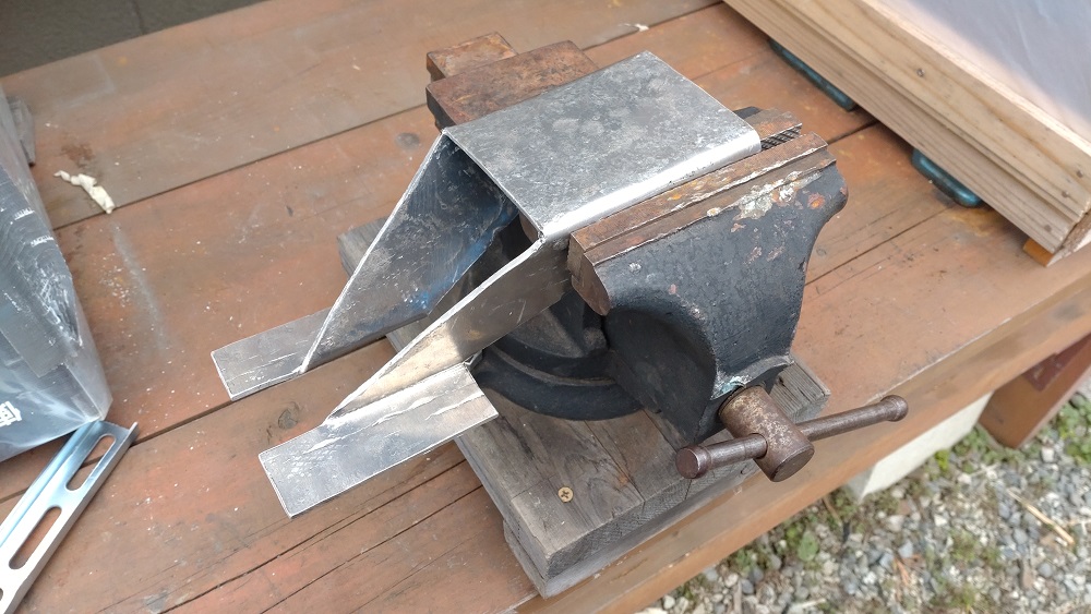 万力と金槌だけで、折り曲げているので、あちこち傷だらけです。