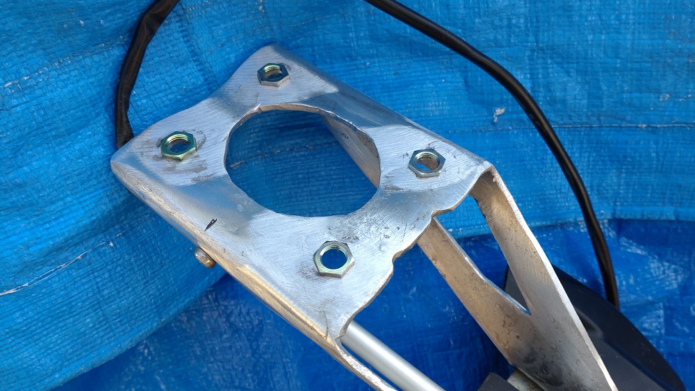 オリジナルのフレーム取付部分は、4つのボルト穴にナットが一体になって固定され、振動防止の為(かどうかは分かりませんが)、頭がとびだしていて、この4か所が本体に固定されます。