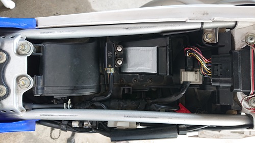 WR250には、高回転時の騒音対策として、エアーフィルターの吸気口をダイヤフラムにより閉じ、吸気量を減少させて、吸入音を抑えています。