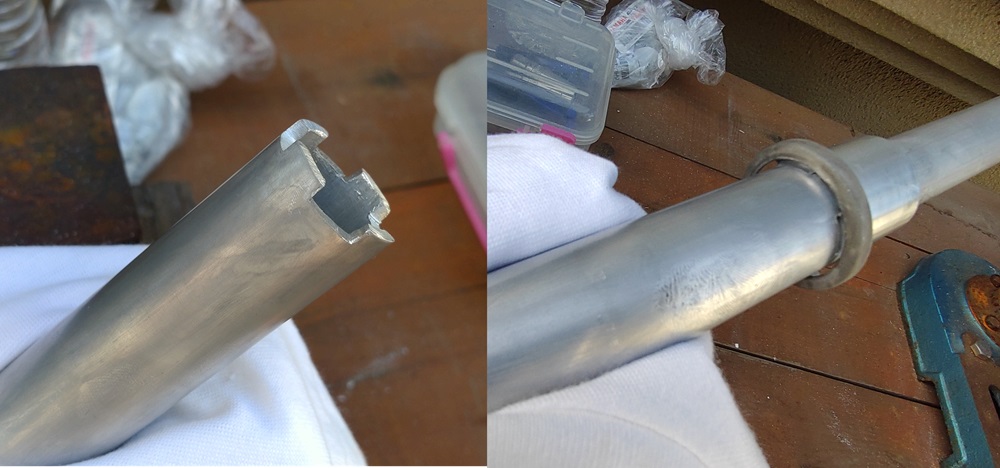 オイルシールの装着は、最初にスライドバルブをアウターチューブに十分(オイルシールが入るスペースが出来るまで)挿入しておく必要があります。