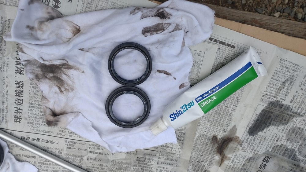 オイルシール、ダストシールには、シリコングリスを塗っておきます。