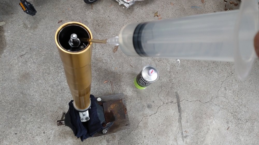 オイルをインナーチューブ上端まで入れた後はしばらく放置します。