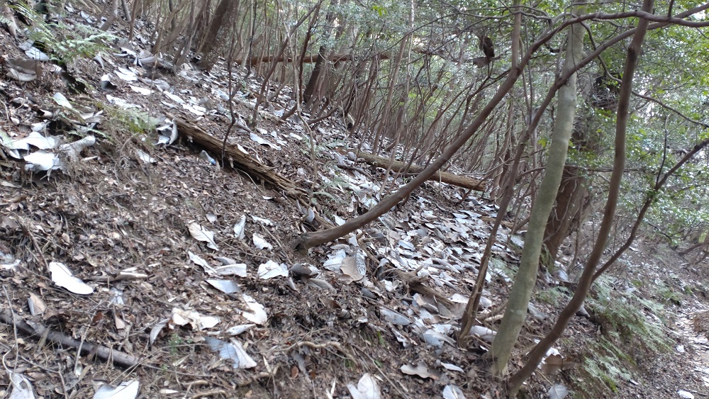3月中ごろでしたが、大きな葉っぱが一面に落ちている場所が何か所かありました。